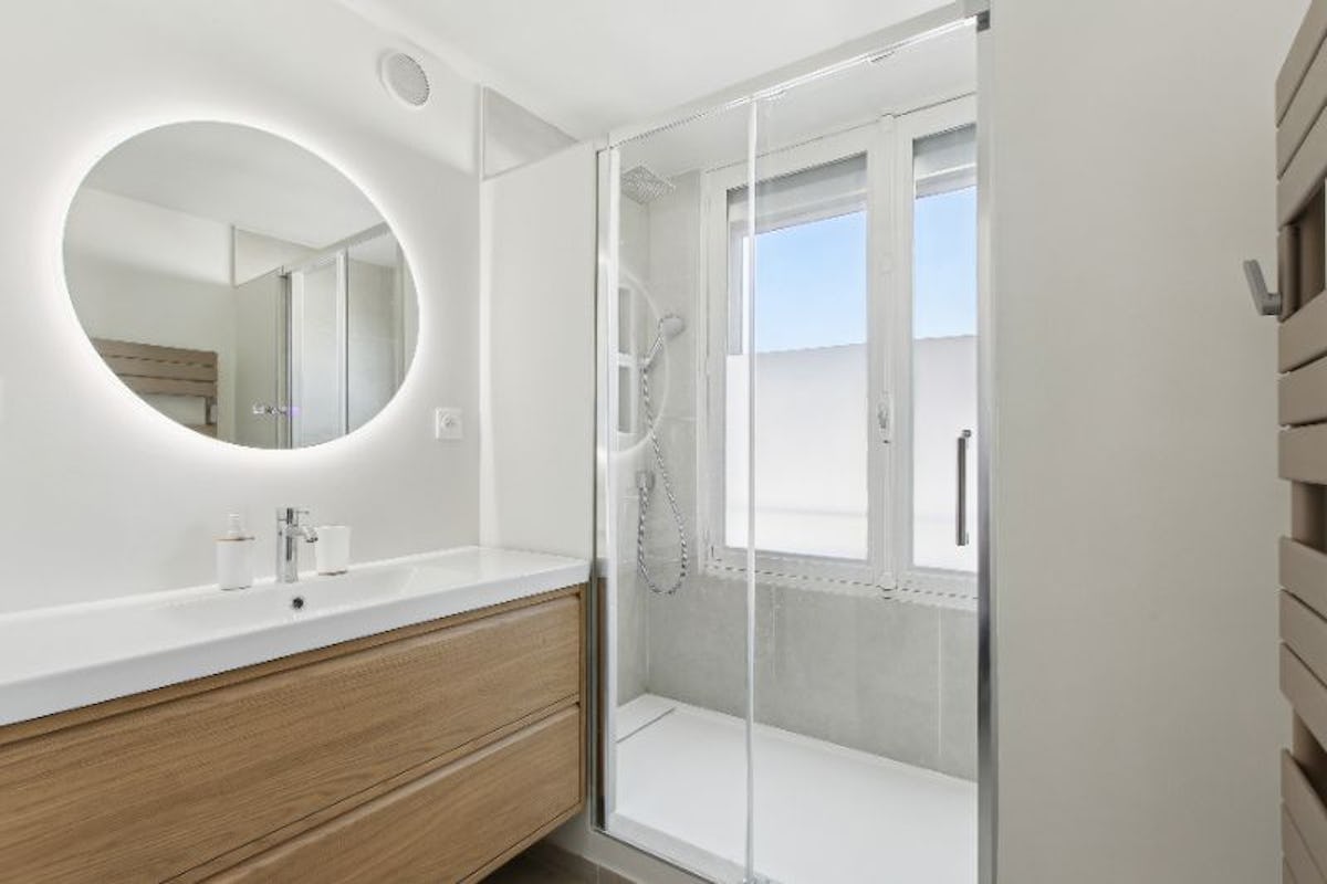 Une ventilation efficace évite condensation et moisissures. VMC hygroréglable ou extraction dédiée : adaptez le système à la surface de la salle de bain. Aérez la pièce après chaque douche. Un sèche-serviettes assure chaleur et bien-être, tandis qu’un plancher chauffant sous grès cérame diffuse une chaleur homogène et agréable.